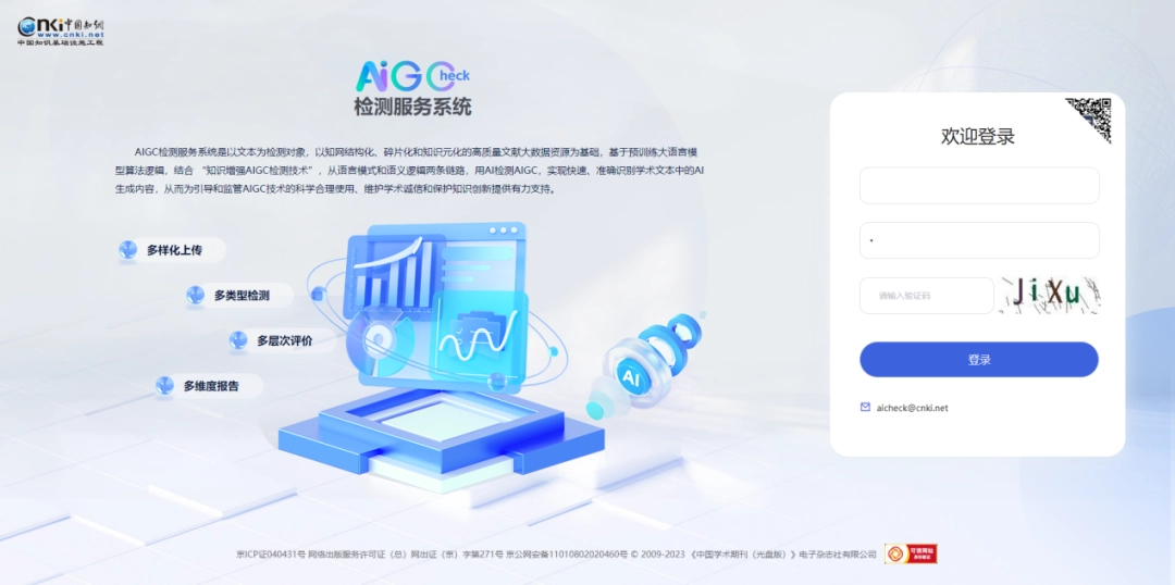 “AIGC 检测服务体系”新品发布会将于近期举行,产品现已敞开试用。链接:https://aicheck.cnki.net/